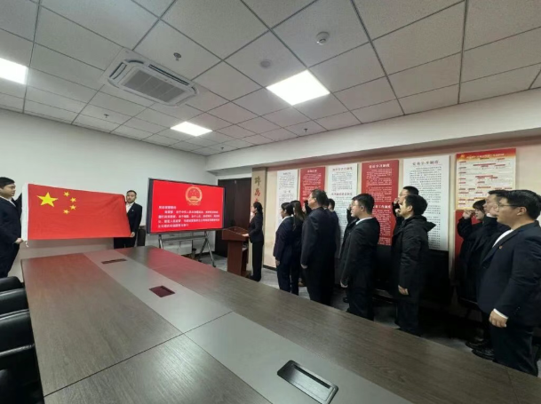 活动伊始,全体党员庄严举行宪法宣誓仪式。党员们身着正装、佩戴党徽,面向国旗肃立,举起右拳庄严宣誓:“我宣誓:忠于中华人民共和国宪法,维护宪法权威,履行法定职责,忠于祖国、忠于人民,恪尽职守、廉洁奉公,接受人民监督,为建设富强民主文明和谐美丽的社会主义现代化强国努力奋斗!”铮铮誓言铿锵有力,彰显了党员们尊崇宪法、维护宪法的坚定决心。宣誓结束后,大家集中观看《宪法之力 守护你我》宣传片,通过生动的影像内容深化对宪法内涵与时代价值的理解。
